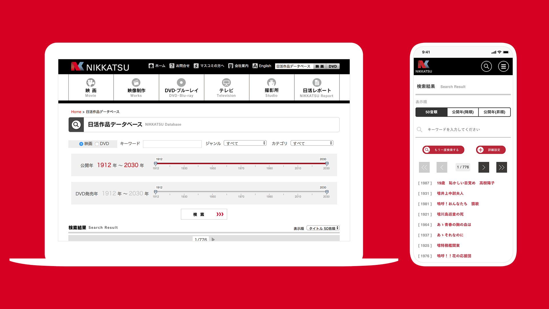 歴史ある膨大な作品を、タッチデバイスでの閲覧最適化で「見やすく紹介しやすい」サイトへ。海外展開を考慮し、別ドメインの英語サイトも制作。